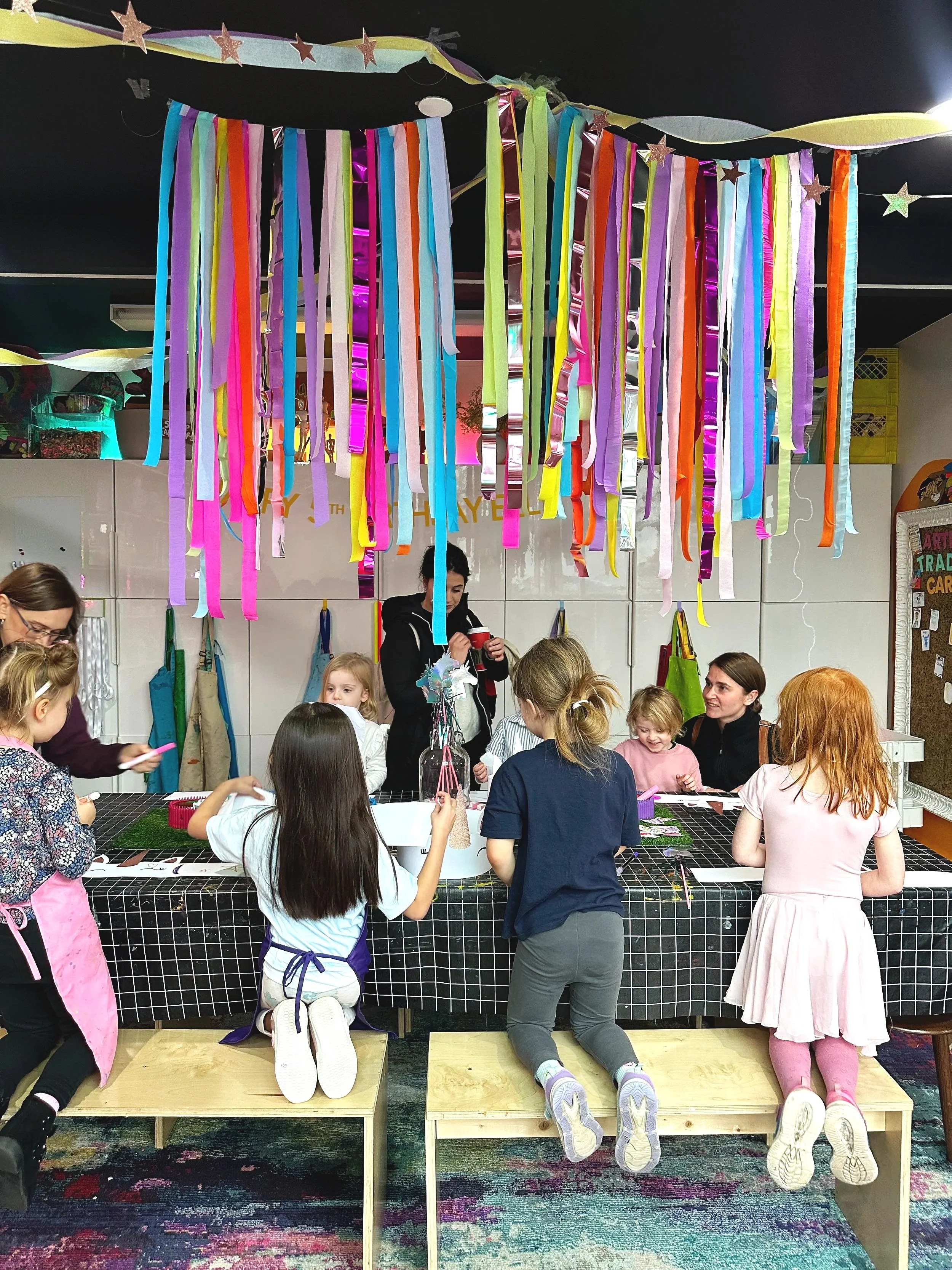 For parties where most children are aged 7 and older, it's wonderful for the birthday child's family to participate and celebrate together. However, we kindly ask that parents of older children consider dropping them off to help foster their independence and make space for their creativity to shine!